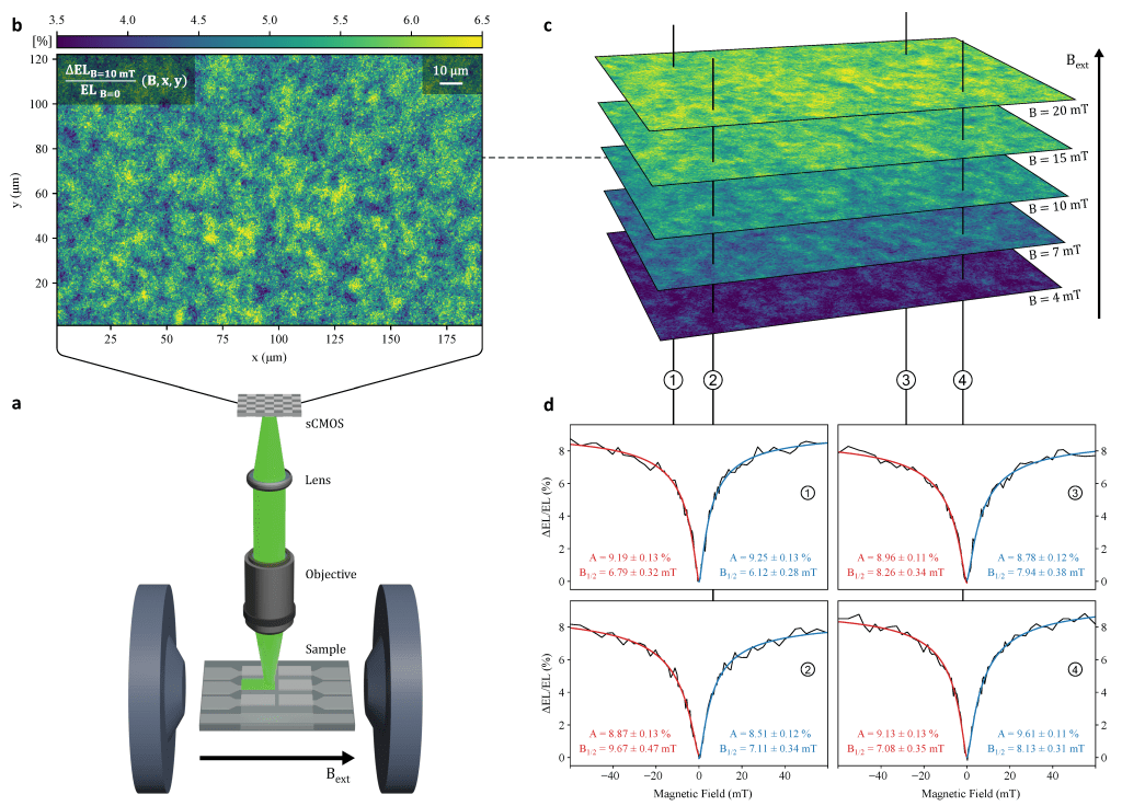 The team, based at UNSW Sydney, were able to achieve this by imaging the microscopic changes in an OLED’s magnetically-enhanced brightness through the use of large magnetic fields, an effect known as magneto-electroluminescence.