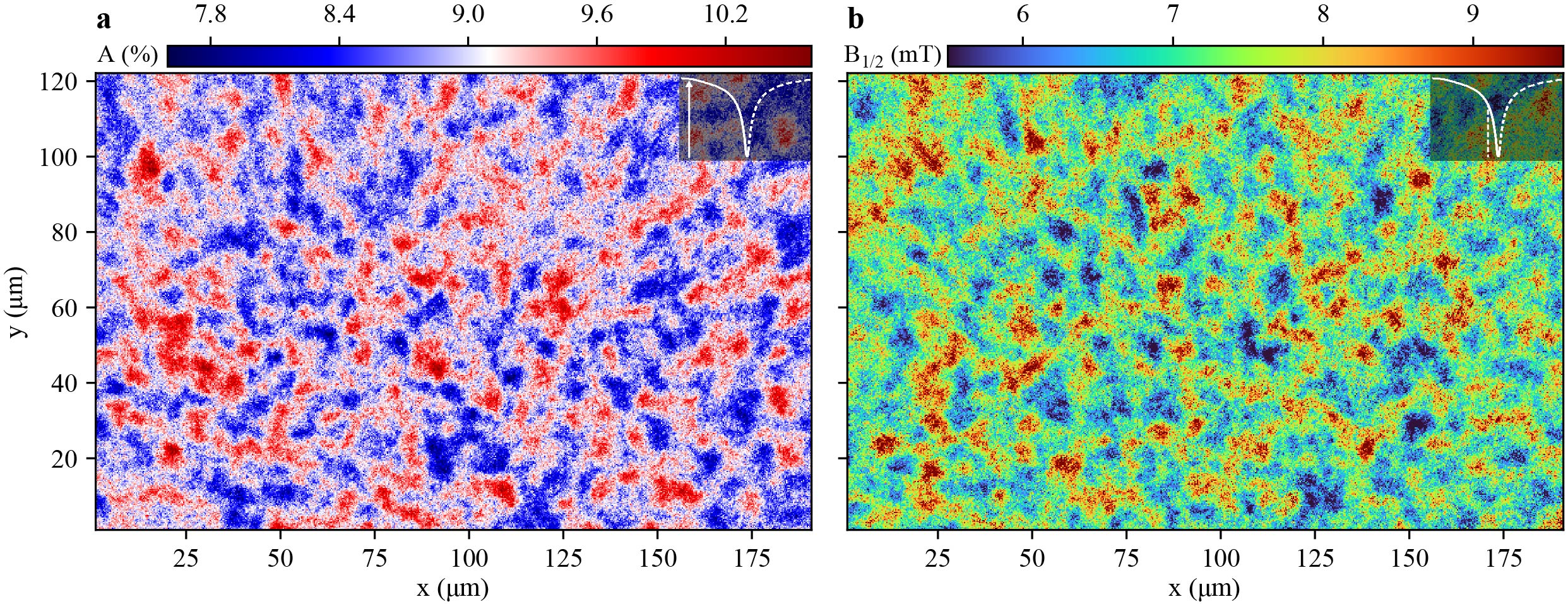 Spatial variation (left) and correlation (right) showing the variability in hyperfine spin properties of the organic materials responsible for light emission in OLEDs.